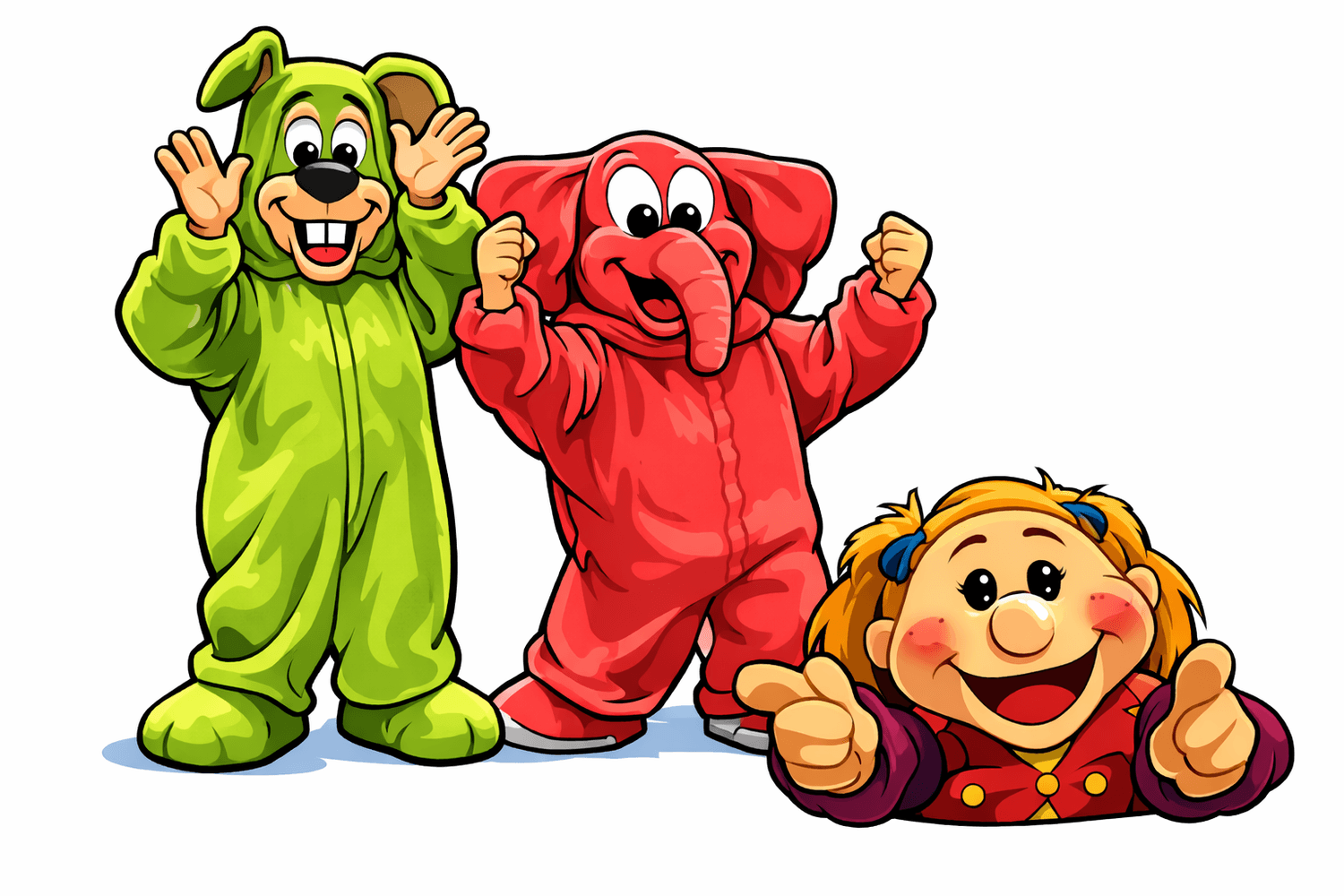 Het Geluksdansje van het Gelukstheater gebeurt onder leiding van Betty Weter met de assistentie van Olifantje en Muis