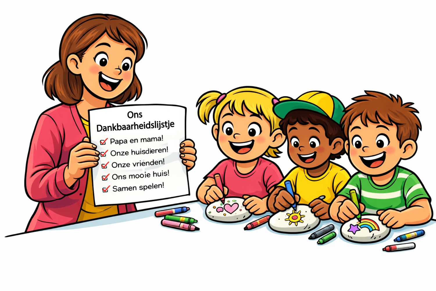 De Dankbaarheidsstenen geven we mooie kleuren en laden we op met ons dankbare gevoel. Fijn om zo'n steen te hebben.