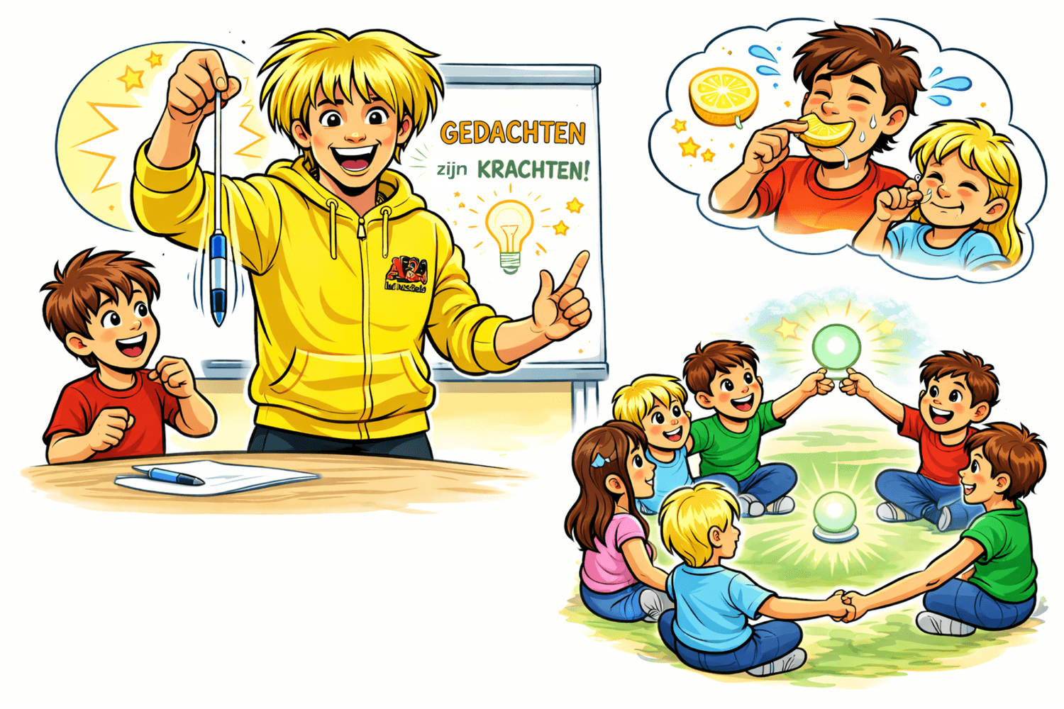 De proefjes in de Gedachten zijn Krachtenworkshop laten ons heel anders naar onze gedachten kijken. Die hebben een nogal krachtige uitwerking op ons Geluk en Succes.
